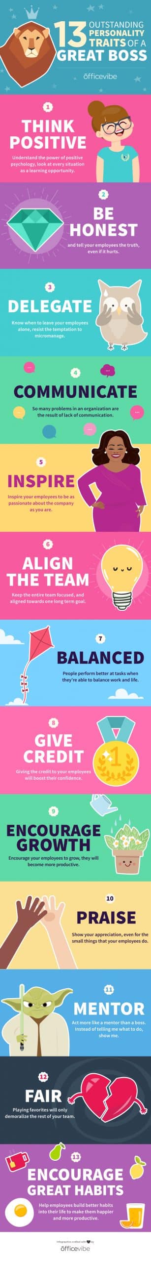 Quelles sont les qualités requises pour être un bon cuisinier ? Bien qu’il n’y ait pas de réponse ferme et définitive, il est clair que certaines vertus sont plus efficaces que d’autres en matière de gestion d’équipe. Et c’est précisément à cette question que l’infographie d’OfficeVibe tente de répondre, qui nous présente 13 qualités essentielles d’un bon manager. Sachant que les deux tiers des employés sont activement à la recherche d’un nouvel emploi ou sont ouverts à cette idée, il n’est pas inutile pour les managers de faire une petite introspection qui pourrait s’avérer essentielle à une approche de rétention des talents !